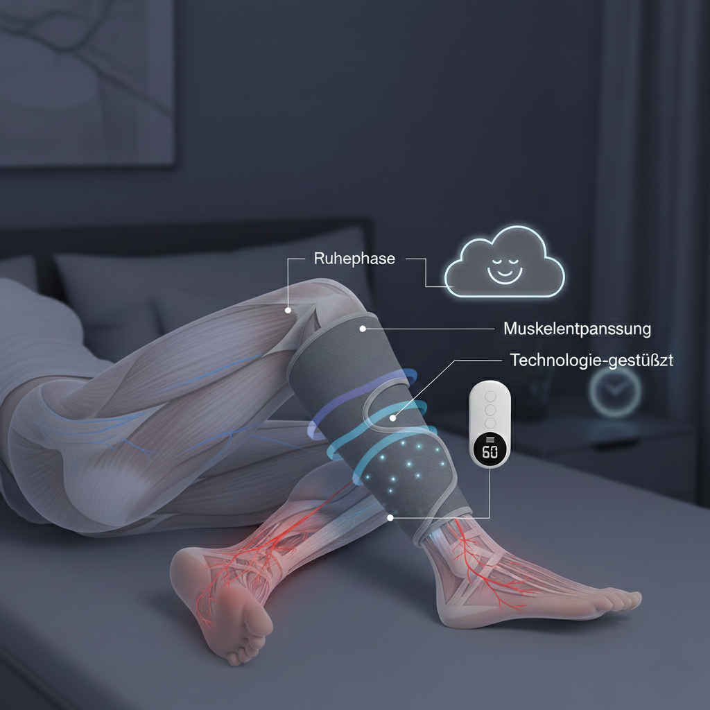 Das integrierte Wärmefeld entspannt Gefäße, während Kompression Durchblutung anregt.