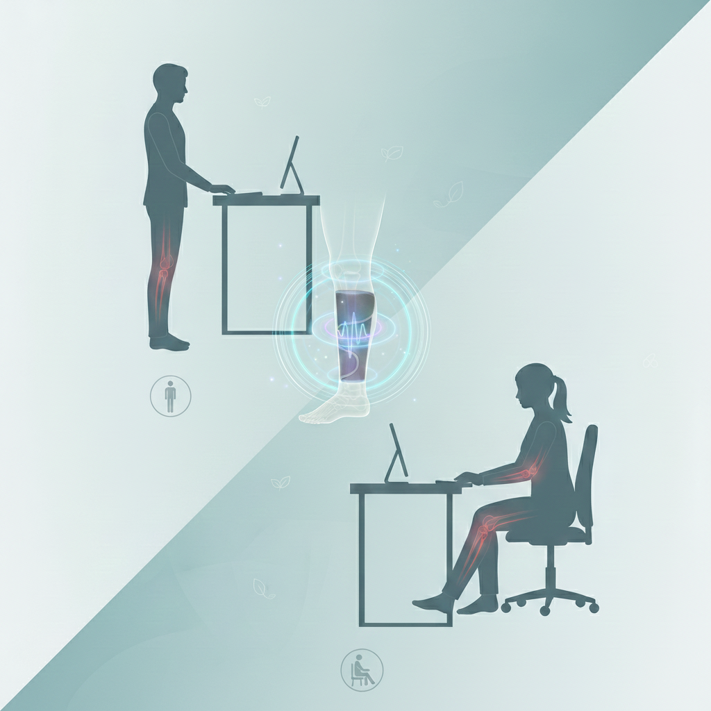 Verwenden Sie Releev™ nach langen Arbeitstagen – es löst tiefe Muskelspannung und verbessert Kreislauf.