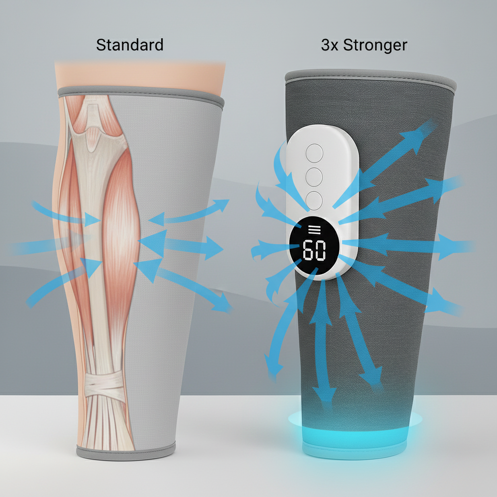 Releev™ nutzt medizinische Kompression mit 3 Druckzonen und integrierter Wärme – kein oberflächliches Vibrieren, sondern echte Tiefenwirkung.